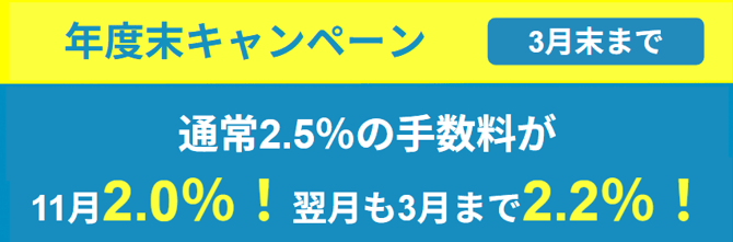 さらに、今なら「年度末キャンペーン」で特別手数料が適用されます!!